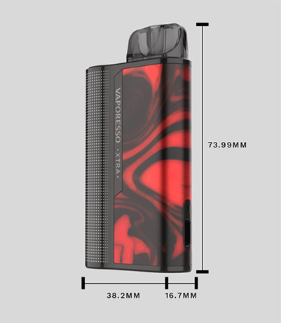 Vaporesso revient avec son tout nouveau kit pod. Le kit Xtra propose des dimensions de 73.9 x 38.2 x 16.7 mm et pourra de cette manière vous accompagner partout dans votre quotidien. Ergonomique, son format rectangulaire est idéal pour une excellente prise en main.